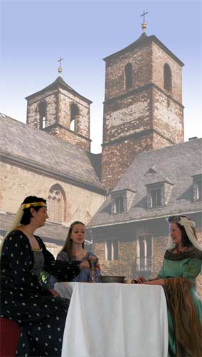 Der Spielmann Arn Ulf kommentiert in Spielszenen die Tischzuchten der Zeit