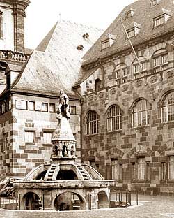 konnte schließlich gesichert werden. Der genius loci spielte eine bestimmende Rolle bei der Themenwahl; die Stadt hatte bereits 1493, nachdem sie das Haus zur Münze erworben hatte, die äußeren Wandflächen über den gotischen Arkaden von dem Maler Nicolaus Nievergalt schmücken lassen - mit Darstellungen Kaiser Friedrichs III., Siegfrieds und anderer Helden der Nibelungensage, die 1689 mit dem Gebäude zerstört worden waren.