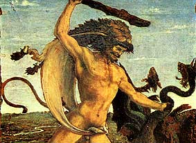 Herakles besiegte den Drachen Ladon, der die goldenen Äpfel im Garten der Göttermutter Hera bewachte und das Meerungeheuer Ketos vor der Küste Trojas um Hesione zu befreien.