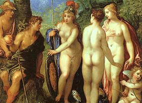 Diese Abbildung zeigt eine anmutige Szenerie, aber der Schein trügt: Sie sehen die drei Göttinnen Athene, Hera und Aphrodite. Diese drei waren zuvor auf einer Hochzeit zu der auch alle anderen eingeladen waren, bis auf Eris, die Göttin der Zwietracht.