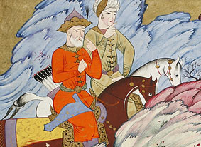 In der Binnenhandlung hat Tariel die indische Prinzessin Nestan zumindest ihrem Willen nach errungen, indem er das Volk der Chataier besiegte. Er verliert letztlich aus eigener Schuld […] und aus politischer Räson […] die Geliebte, die in die Hände von bösen Mächten gerät. So verzehrt sich Tariel in Einöden und Wüsteneien in einer Art tränenreicher Dauertrance. […] Mit Awtandils Hilfe wird Tariel wieder mit seiner Braut vereint.