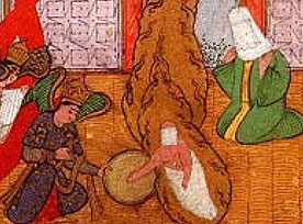 Sufismus ist die Mystik im Islam und entstand im 8. Jh., 100 Jahre nach dem Tode des Propheten. Sufismus leitet sich von dem arabischen Wort „safu“ ab, das bedeutet Reinheit. „suf“ heißt aber auch im arabischen Wolle. Ein weißes Wollkleid, das die ersten Mystiker als Zeichen der Demut trugen.
