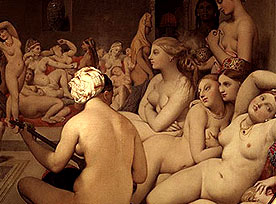 Ich habe bewusst das Bild ausgesucht. Hier kommt zum Ausdruck, das in der westlichen Vorstellung vom Harem der Intellekt der Frauen ersatzlos gestrichen wurde. Die Frauen in dem Bild sitzen da, teilnahmslos und nackt, völlig inaktiv. Das entsprach nicht dem orientalischen Harem, indem neben der Schönheit Intelligenz und Talent gefragt war.