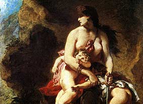 Damit erreicht sie die Dimension Medeas. In beiden Fällen werden unschuldige Kinder von ihren Müttern geopfert, um damit ein Racheziel zu erreichen, bei dem diese Kinder Mittel zum Zweck sind. Dieses Mutterverhalten liegt außerhalb des kultivierten, zivilisierten, humanen Denkens und Fühlens. Es ist ein Ausdruck von Barbarentum, das keine Grenze des emotionalen Ausbruchs kennt, das atavistischen Impulsen freien Lauf lässt und jede Verantwortlichkeit gegenüber einem Sittengesetz hintansetzt.