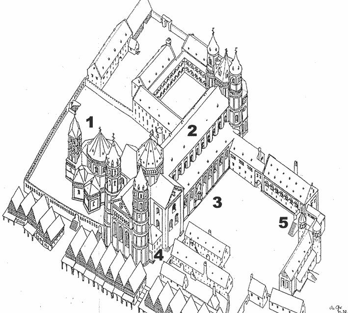 Abbildung 3: Rekonstruktion des Wormser Dombezirks im 13. Jahrhundert (von Nordosten aus gesehen)