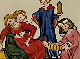 In der höfischen Literatur des Mittelalters spielt auch die Heilkunst eine Rolle. So stellt uns Hartmann von Aue im „Armen Heinrich" das Zerrbild eines salernitanischen Arztes vor. Wolfram von Eschenbach beschreibt im Parzival einen chirurgischen Eingriff nach der Lehre des Abulkasim. Im Frauendienst lobt Ulrich von Liechtenstein einen Chirurgen, der ihm die Hasenscharte operiert hat und das Nibelungenlied nennt in der 4. Aventiure Kriegschirurgen im Einsatz nach dem Sachsenkrieg, die reich entlohnt werden.